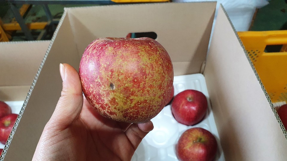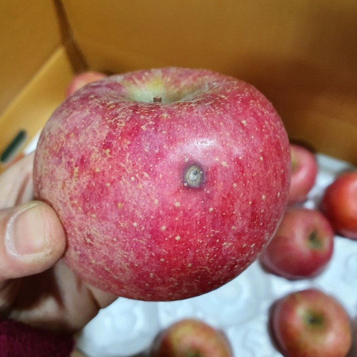 미색 찍힘 작은멍 꼭지 갈라짐 등...흠집 사과는 흠집 사과일 뿐 정품이 될 수 없어요.